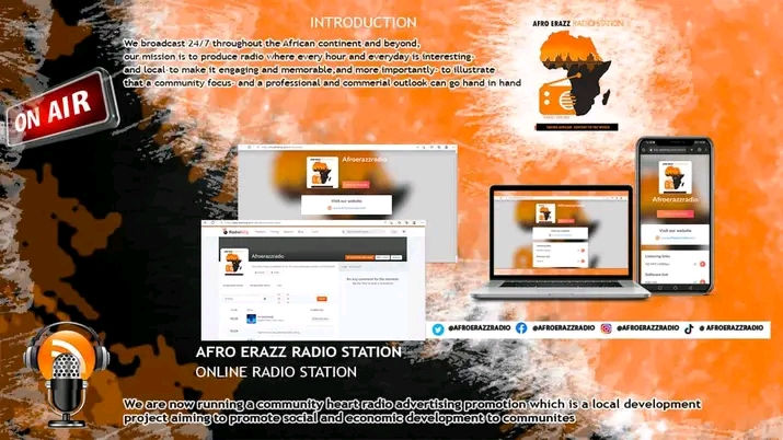 Afro Erazz Radio is an online community radio station that is primarily self-taught and has it's own approach to - and definition of - promoting social & economic development to the communities. They believe in constantly taking risks and believe that inspiration can be found wherever they look. Afro Erazz Radio is in partnership with Arts Pioneers NPO.To find out more about our FREE radio Advertising feel free to get in touch.